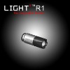 Rechargeable LED flashlight 1, Description Spec: 20.5X49mm1x5mm Nichia LED chipBlue moon lens systemTwist head on/off switch 2, Installing the Batteries Hold the aluminium head firmly in one hand and turn the stainless steel casing in a counter-ockwise direction until fully unscrewed. Move the casing away from the head of the flashlight and this will reveal the battery compartment. Place the batteries into the compartment ensuring that the end marked with plus (+) pole goes in first, pointing towards the rear of the flashlight. With the batteries correctly installed replace the casing and turn it in a clockwise direction until fully tightened. The flashlight is now ready to be charged. IMPORTANT: Please ensure that the batteries are installed correctly otherwise battery damage may occur, possibly resulting in an explosion. Only use high quality rechargeable batteries. If you do not intend to use the flashlight for a long period of time, remove the batteries to prevent them leaking and damaging the flashlight. 3, Charging the Flashlight This flashlight is designed to be use in automobiles and should be inserted into the 12V power/cigarette lighter socket. The flashlight will glow blue while charging and then go off automatically once fully charged. Full charge will then be maintained so that it is always ready for use. 4, Operating the Flashlight To switch on the flashlight you will need to remove it from the 12V socket and while holding the head of the flashlight firmly in one hand turn the stainless steel casing slowly in a counter-clockwise direction until the light comes on. To switch the flashlight off is simply the reverse; holding the head of the flashlight firmly in one hand turn the stainless steel casing slowly in a clockwise direction until the light goes out and the casing is fully tightened. 5, Warning 1, The light from this flashlight is very powerful and should not be shone directly into anyone's eyes, as this may cause short term blindness. If the beam does shine in your eyes, close them and look away immediately. 2, In the case of commercial use, the user of the flashlight should only use this product in accordance with any local laws and regulations. 6, More pictures can show you the details